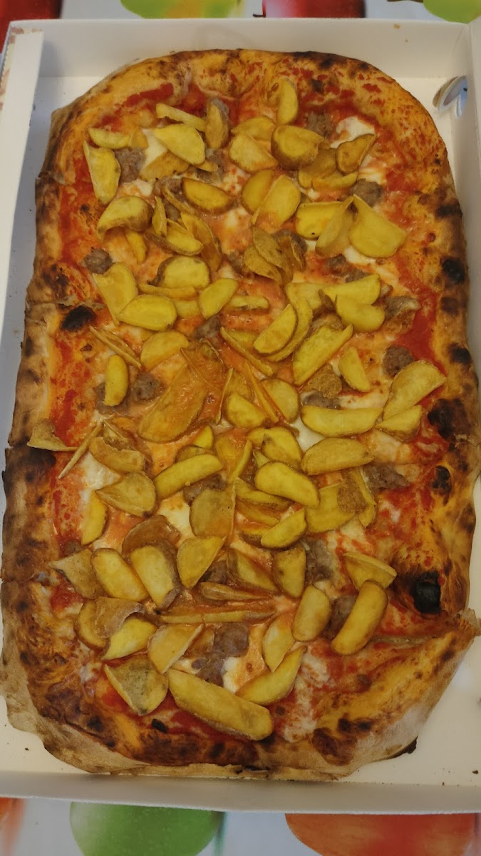 Io ed un mio amico siamo passati a provare questa pizzeria di Carpi, ormai presente da diversi anni. Abbiamo ordinato una pizza mezzo metro wurstel e patatine da asporto, pronta per l'orario prestabilito! La pizza in se é molto buona, con l'impasto morbido e il cornicione "gonfio" come quelle napoletane; in questo caso gli ingredienti sono stati una sorpresa in quanto le patatine fritte sembrano esser artigianali, fatte a mano, diverse dalle classiche patatine mentre per i wurstel nulla da dire, se non per il fatto che li abbiamo trovati diversi rispetto ai classici da "industria" e presupponendo quindi che fossero più naturali e quindi salutari (nostre impressioni). Il costo della pizza mezzo metro wurstel e patatine é stato di 21 euro (con inclusa bottiglia di una bibita a piacere - 1 litro), nella media rispetto alle pizzerie di Carpi. Ottima pizza, prezzo nella media, da provare! AGGIORNAMENTO DEL 27/04/24 Tornato con due miei amici dopo poco più di un anno e sono cambiate alcune cose. Per ovvi motivi il prezzo é cambiato: mezzo metro margherita+ mezzo metro wurstel e patatine fritte a 42€, senza bottiglie di bibite (come succedeva fino allo scorso anno). Tutto sommato buona pizza.